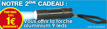 Notez que si vous mettez en premier le produit (torche aluminium 9leds) dans votre panier, celui-ci apparaîtra à son prix normal, et, dès que vous aurez ajouté un article à votre commande, le prix du produit passera automatiquement au prix cadeau de 1,00 Euro.