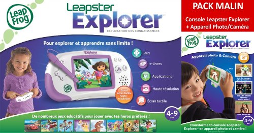 • OFFRE SPECIALE regroupant la console Leapster Explorer et son module appareil photo / Caméra. La console Leapster Explorer permet de jouer et d'apprendre avec ses héros préférés grâce à ses jeux cartouches ou téléchargeables. C'est également la seule console ludo-éducative permettant de prendre des photos et d'en faire des trucages, montages, créer des albums etc.