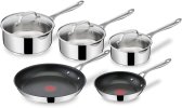 Batterie de cuisine Tefal Jamie Olivers Cook's Direct Inox - 8 pcs, 2 poêles, 3 casseroles + couvercles E304S544 94,89€ au lieu de 143,74€
