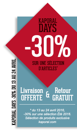 Kaporal Days -30% de réduction sur des articles printemps été 2016.