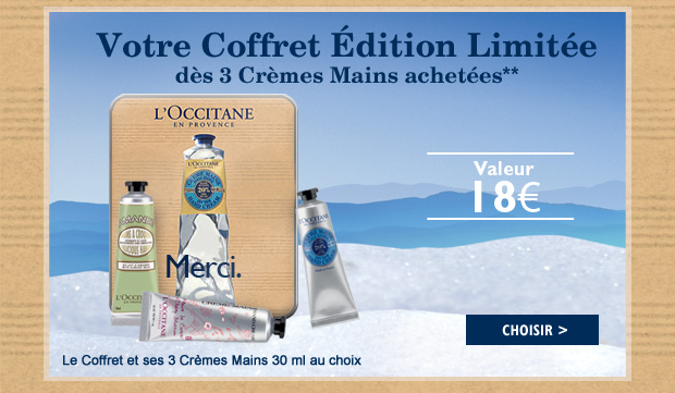 L'Occitane > boîte métal offerte pour l'achat de 3 crèmes mains