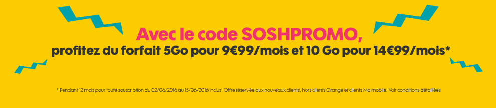 10€ de réduction sur des forfaits SOSH dont appels/SMS illimités + 5Go à 9.99€.