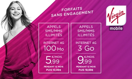 Forfaits Virgin Mobile Illimités à 5.99€ (100 Mo) ou 9.99€ (3Go) pendant 1 an.