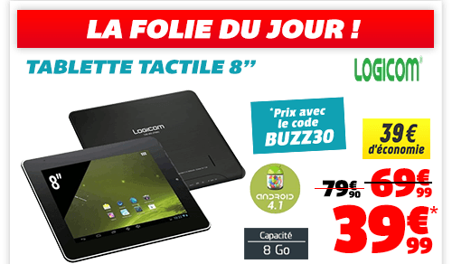 Logicom Tablette 8" Dual Core 8Go à 39.99€ livré.