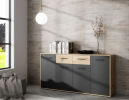 Buffet PILVI - Style contemporain - Décor Chêne et noir - 4 portes + 2 tiroirs - L 162,3 x P 34,2 x H 81,7 cm 137,99€ au lieu de 275€ - Cdiscount