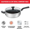 Tefal Sauteuse 26 cm + couvercle verre, Induction, Acier inoxydable haute qualité, Revêtement antiadhésif 29,65€ au lieu de 50€ amazon