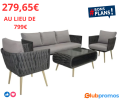 Salon de jardin Elijah Ciddeco : canapé 182cm + 2 fauteuils 68cm + table basse 279,65€ au lieu de 799€