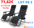 LOT DE 2 chaises longues inclinables VOUNOT 71,62€ au lieu de 129,90€ sur Amazon