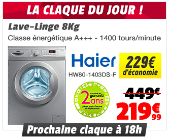 Lave linge 8 ks HAIER HW80-1403DS-F à 219.99€ l ivré.