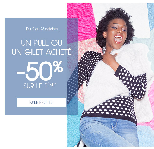Cache Cache - 50 % sur le deuxième pull ou gilet jusqu'au 23/10/16