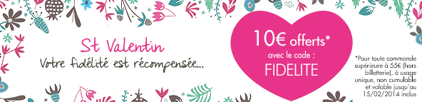 10€ offerts avec le code : FIDELITE pour toute commande supérieure à 55€ (hors billetteries, à usage unique) non cumulable et valable jusqu'au 15/02.