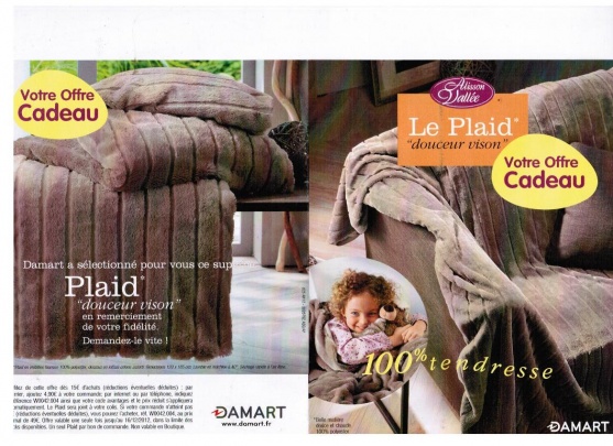 Pour celles et ceux que cela pourrait intéresser; la ref du plaid douceur... : N0042004 à 4€90: j'en ai commandé avec le code -20/39 ;ça fontionne impec