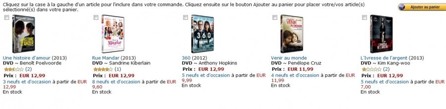 Nouvelle offre amazon" I love cinema" qui vous permet d'acheter 2 DVD pour 20€ !