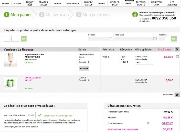 Codes 73040, 73059 et 73067 -25% sur ANNE WEYBURN , fpg des 35€ et cadeau: VALISE PURPLE