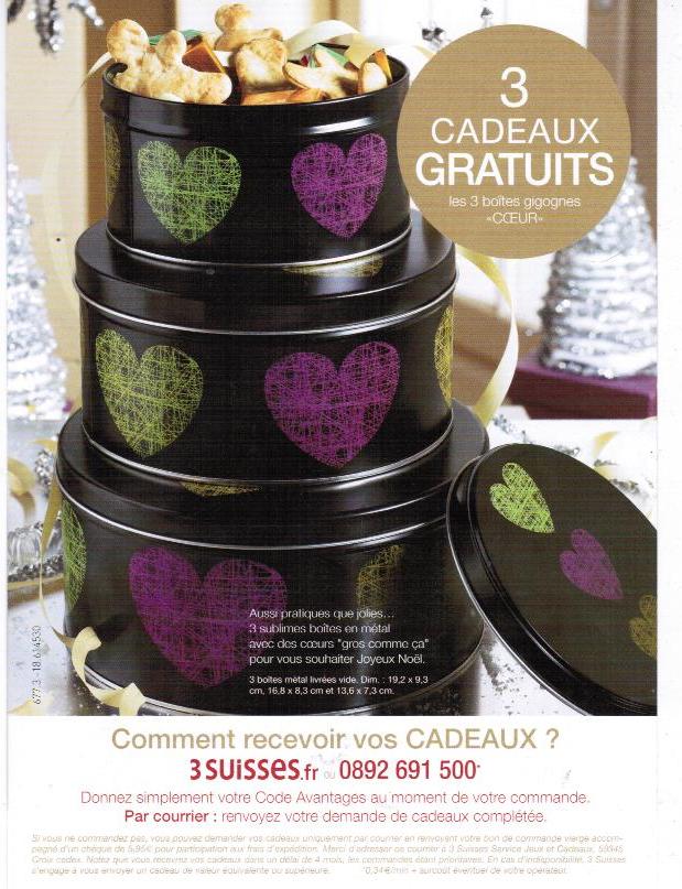 sousou1 a dit: avec le code 67865 Voir la pièce jointe 10464 Voir la pièce jointe 10465 cadeau les 3 boites gigognes "coeurs" code 67865 . 3S:arrow: Cliquez pour agrandir... kaire a dit: [FONT=Arial, Helvetica, sans-serif]même avantage avec code: [/FONT][FONT=Arial, Helvetica, sans-serif][URL="http://v.newsletters.3suisses.fr/r/?id=h631e54bd%2c2551a49c%2c25520e55&xtor=EML0436208001001"][FONT=Arial, Helvetica, sans-serif]63495[/FONT][/FONT][/URL] Cliquez pour agrandir... Super, merci beaucoup les filles
