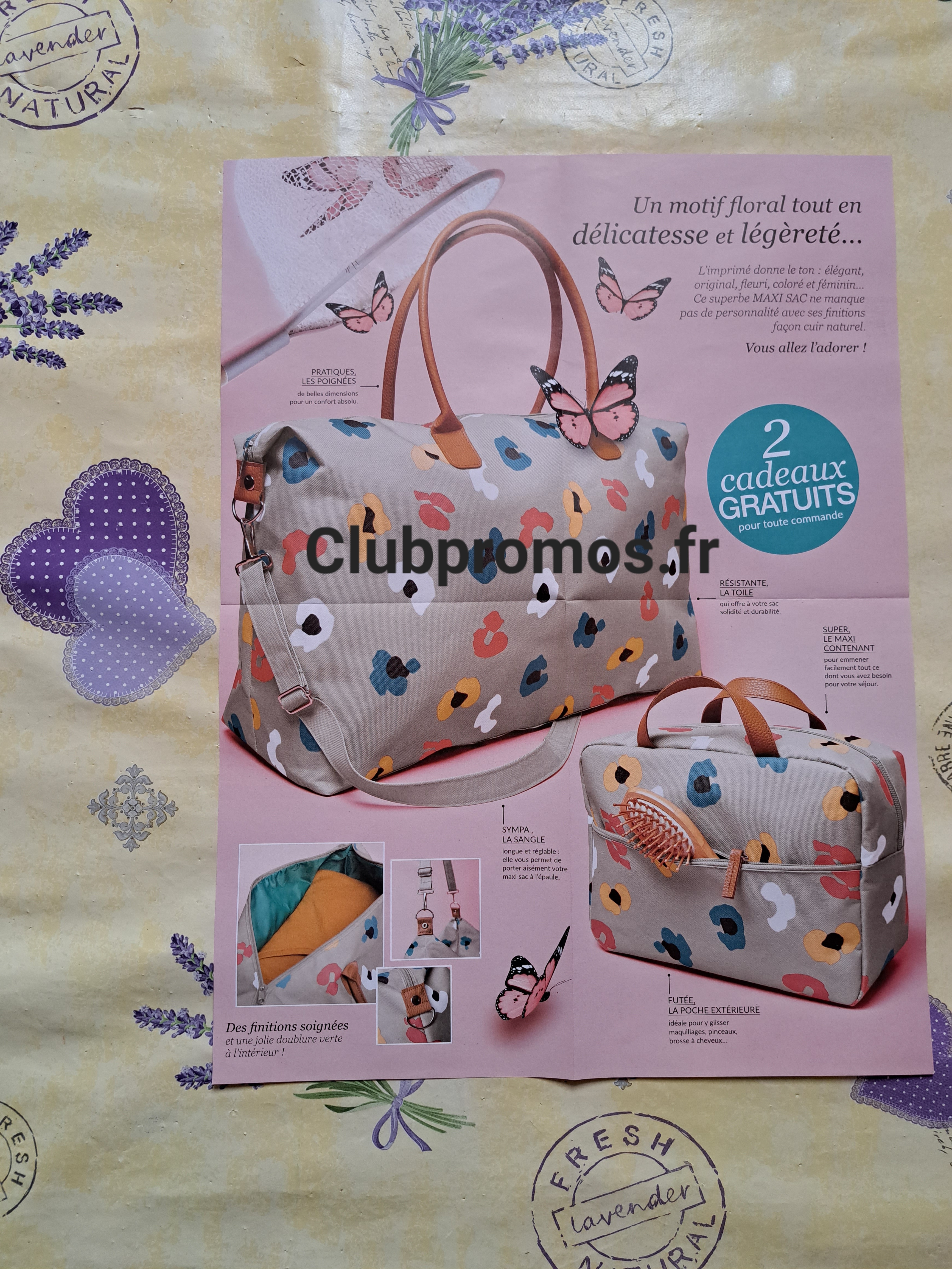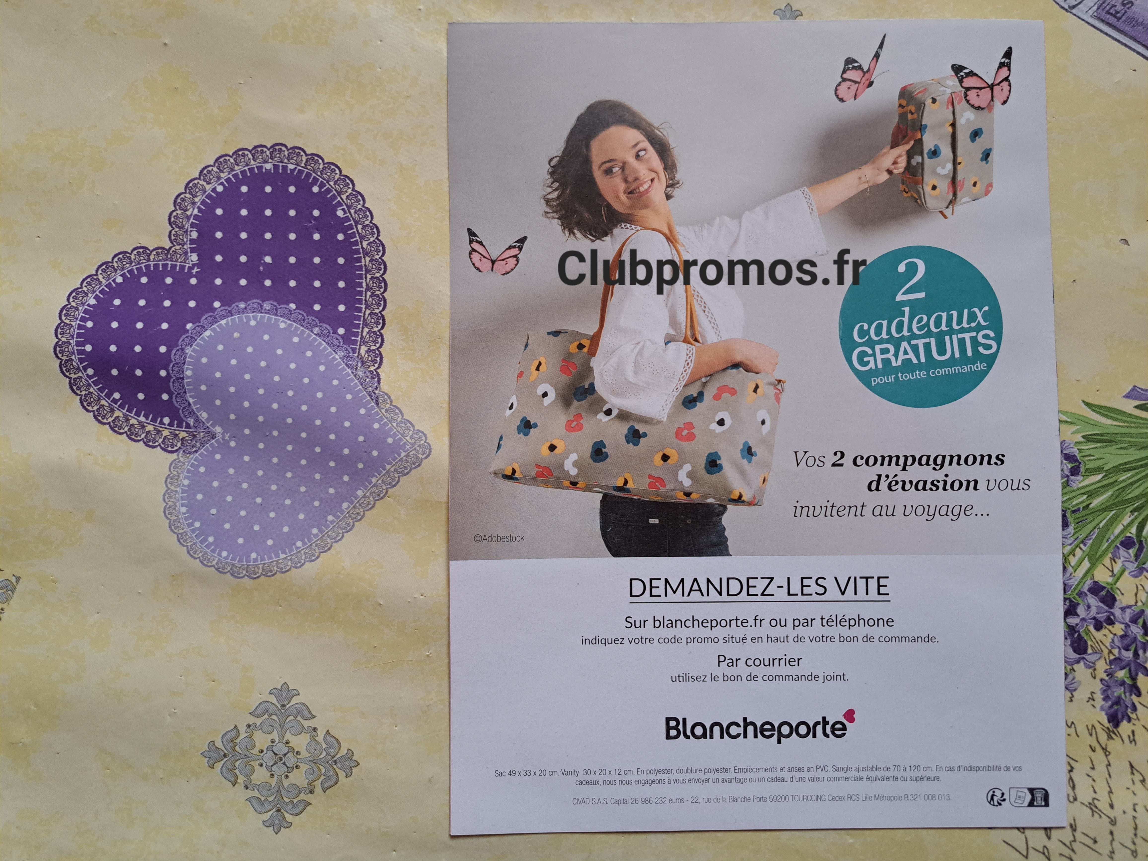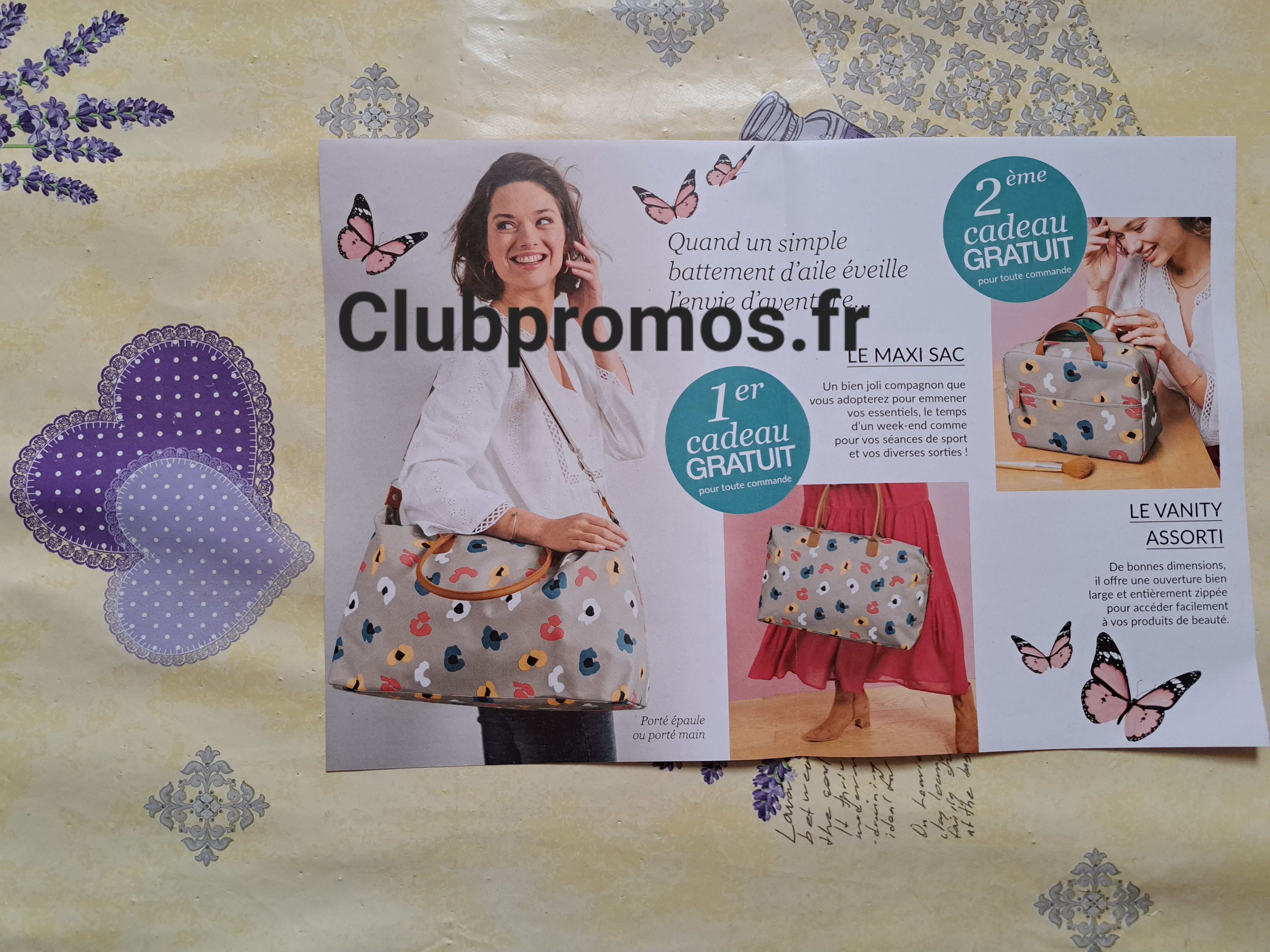 de chez Blanche Porte qui donne en cadeaupour toute commande un maxi et joli sac et un joli vanity assorti, matière : polyester, dimensions du sac : 49 × 33 × 20cm et dimensions du vanity : 30 × 20 × 12 cm, voir photos
