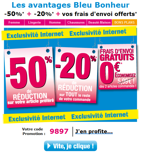 Bleu bonheur : -50% + - 20% + frais d'envoi offerts