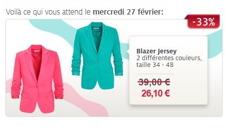 J'ai reçu le mail du jour de c et a et j aime bien le blazer de la vente flash du 27 fevrier ;)[/QUOTE]