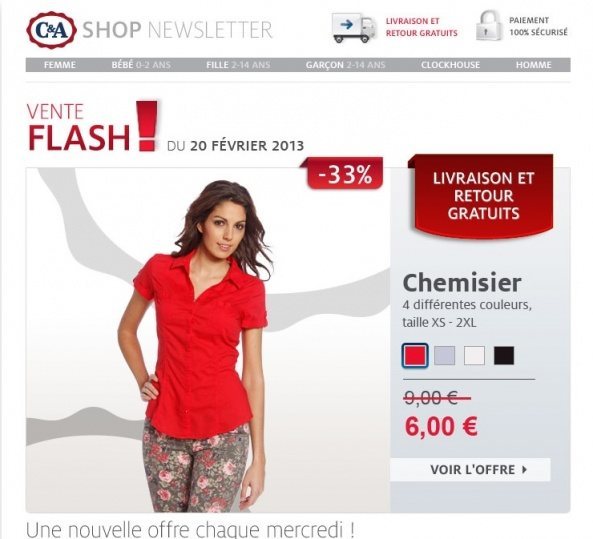 C&A vente flash du jour : -33% sur le Chemisier