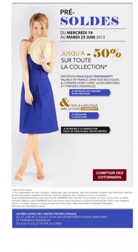 Jusqu'à 50% de réduction sur toute la collection Printemps-Été 2013 Du 19 au 25 juin 2013