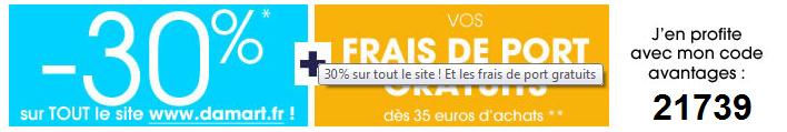 [FONT=Arial, Helvetica, sans-serif]*Réduction de 30% sur votre commande valable une seule fois sur toute la collection Printemps-été 2012 sur les sites www.damart.fr et damartsport valable jusqu'au 10/06/2012, non cumulable avec d'autres réductions. Ne peut être déduite d'une commande en cours, ni faire l'objet d'une contrepartie monétaire. Offre non valable en boutiques.[/FONT]