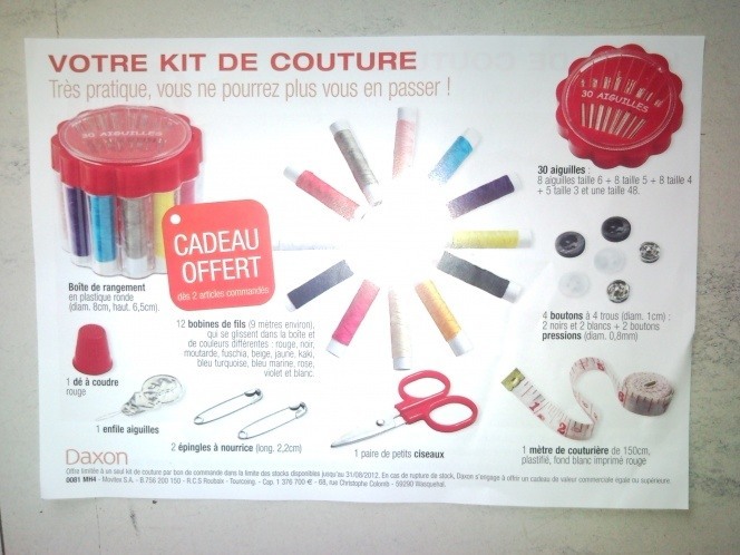 merci ! tu en sais plus sur "kit de couture" ? oui parce qu'après le coup du dvd en cadeau avec une appellation géniale...