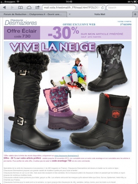 Offre - 30 % sur votre article préféré : valable jusqu'au 30 novembre 2013, non cumulable avec un autre code avantage et non cumulable avec les articles à prix barrés. Pour profiter de cette offre, n'oubliez pas de saisir le code avantage 730 lors de votre commande.
