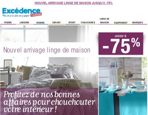 Excédence Jusqu'à -75% linge de maison !