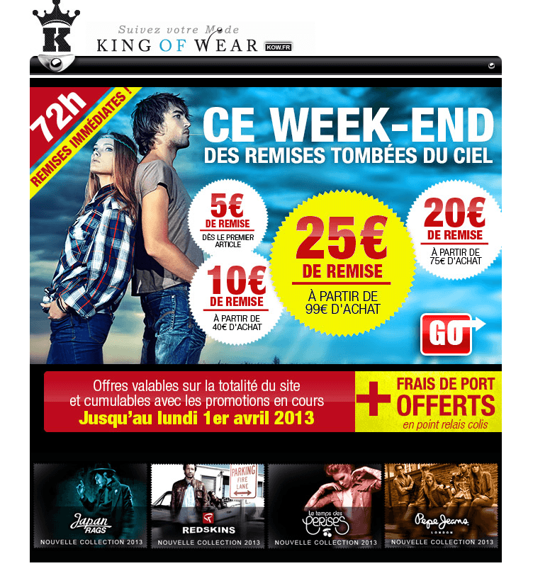 King of de wear des réductions et fdg en relais