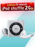 - Offre limitée à un iPod Shuffle 2Go par entreprise, pour toute première commande supérieure à 450 € HT (hors promotions, boutique informatique, hors assurance facultative et frais de livraison).