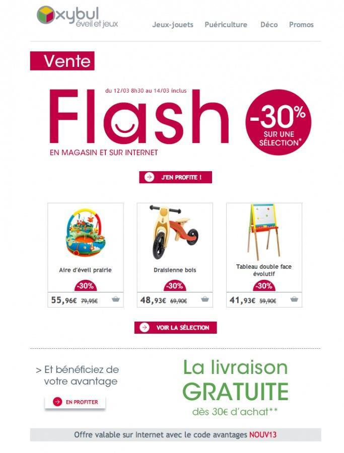 Offre valable à partir du 12/03/2013 à 08h30 et jusqu’au 14/03/2013 pour tout achat, non cumulable avec toute autre offre promotionnelle.