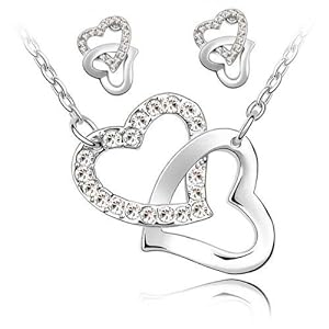 Parure Collier et Boucles d'oreille 2 Coeurs entrelacés et Chaîne en plaqué Or blanc 18 carats - Blanc: Amazon.fr: Bijoux