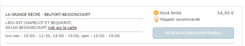 Demandé dans mon Intermarché, plus aucun dispo dans aucun Intermarché (d'après la dame de l'accueil : rupture de stock et impossible de commander)