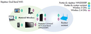 Le répéteur Universel Dual Band augmente la couverture Wi-Fi pour votre bureau ou pour votre réseau domestique notamment pour votre installation home cinéma. Il fonctionne avec n'importe quel routeur WiFi standard et permet de connecter des iPads, des tablettes et plus encore.