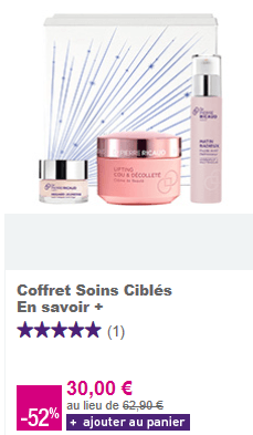 en premier cadeau au choix : le concentré affinant ovale visage ou le gel crème anti-cellulite incrustée ou la montre bleue ou le trio de mini soins en deuxième cadeau dès 30€ d'achat : la pochette de soirée