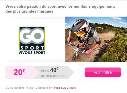 Rosedeal Go Sport vente-privée - payez 20€ dépensez 40€