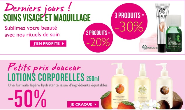 *50 % de réduction sur les Lotions Corporelles 250ml de la page The Body Shop - Corps & Bain - Hydratants | The Body Shop . Offre valable du 12 mars 2013 au 4 avril 2013 à 8H, cumulable avec la réduction de 10 % réservée aux membres du Club Love Your Body™.