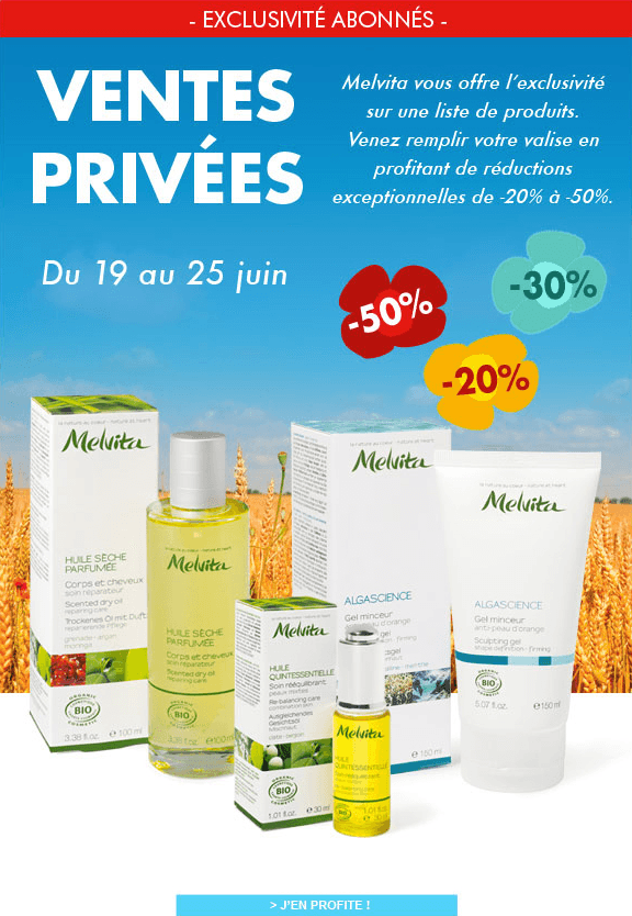 Discorde Membre actif 23 Janvier 2013 340 23 60 19 Juin 2013 #1 Ventes privées : réductions exclusives sur les produits bio Melvita Fichiers joints Melvita.PNG 149.7 KB · Affichages: 183