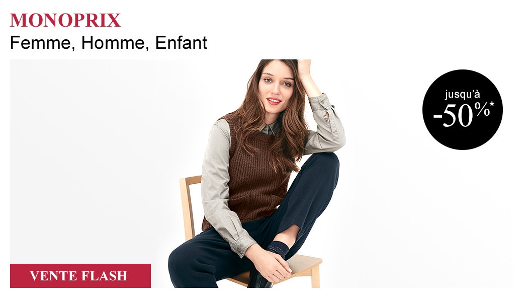 Ventes flash de La Redoute se terminant lundi 10 octobre 2016 au soir : Monoprix (jusqu'à - 50 %), Histoire d'Or (jusqu'à - 50 %), Aigle (jusqu'à - 30 %), Hector & Lola (jusqu'à - 50 %), casserolerie (Seb, Bialetti, Tefal, Beka, Le Creuset, Aubecq, Lagostina : jusqu'à - 30 %)), canapés (jusqu'à - 30 %), bien-être (luminothérapie, aromathérapie, appareils de massage : jusqu'à - 40 %).