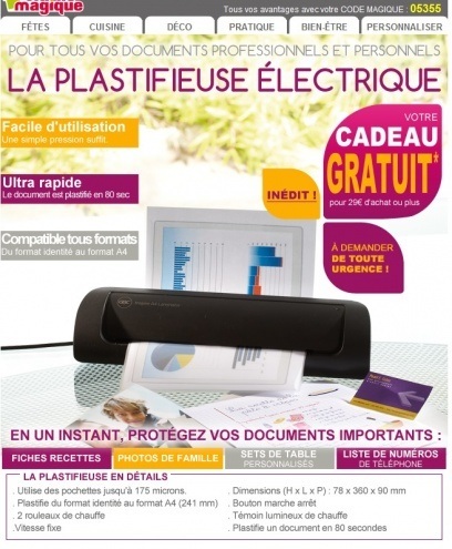 VM : dès 29 € d'achat la plastifieuse électrique en cadeau