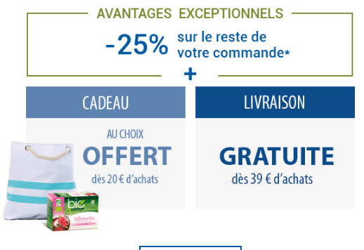 25% sur le reste de la commande(hors infusions à prix catalogue).