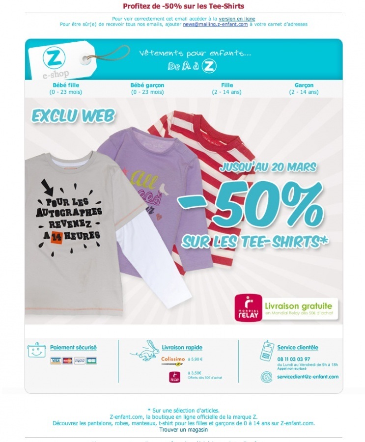Z enfants -50% sur une sélection de tee shirt