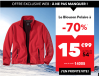 Sur AtlasForMen, blouson polaire rouge à - 70 % soit 15€99 au lieu de 54€90.