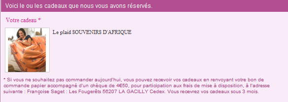 ...cadeau jolie plaid douceur d'afrique et les frais de porte gratuit