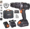 [Cyber Monday Offer]Tacklife Perceuse Visseuse Sans Fil 18V à 2 Vitesses avec Marteau et 2 Batteries Lithium-ion (2,0 Ah),Mandrin Métal 13mm Max Couple 35N. m, Charge Rapide 1h, Accessoires 43pcs