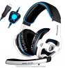 SADES SA903 Gaming Headset Casque 7.1 USB Surround Sound Stereo Pro PC Casque de pc d'écoute USB Casque de gaming d'écoute avec microphone Micro en profondeur Contrôle de volume sur l'oreille Éclairage LED pour PC Gamers (Blanc)