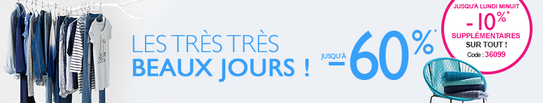 -40% de réduction sur votre article préféré, hors prix rouge, vert & Cie avec le code promo 34770.Offre valable jusqu'au 31/07/2015, une seule fois, sur les produits vendus et expédiés par La Redoute. Non cumulable avec une autre offre.