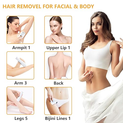 - 【5 niveaux d'énergie 】 Il a 5 niveaux d'énergie différents pour s'adapter aux différentes sensibilités de la peau. La conception à deux modes de flash peut satisfaire vos demandes concernant différentes pièces d’épilation. Le mode flash est principalement utilisé pour l’épilation de faible surface, telle que la ligne du bikini, les doigts, les lèvres; et le mode de glissement peut être utilisé pour une grande zone d’épilation, telle que les bras, les jambes, la poitrine, le ventre et le dos.
