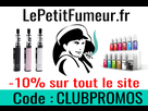 Code : CLUBPROMOS pour obtenir 10% sur tout le site de cigarettes électroniques et eliquides : http://www.lepetitfumeur.fr