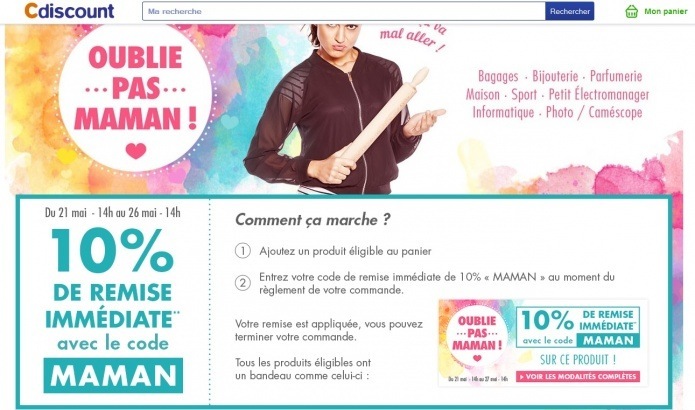 jusqu'au 26 mai 14h, cdiscount fait un cadeau spécial fête des mères